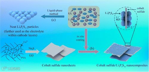 硫化钴表面原位生长Li7P3S11电解质和纯Li7P3S11电解质的制备过程示意图。
