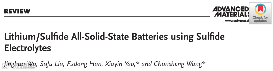 近日,马里兰大学王春生教授、中国科学院宁波材料技术与工程研究所姚霞银研究员课题组在国际顶级期刊ADVANCED MATERIALS上发表题为“Lithium/Sulfide All-Solid-State Batteries using Sulfide Electrolytes”的综述。