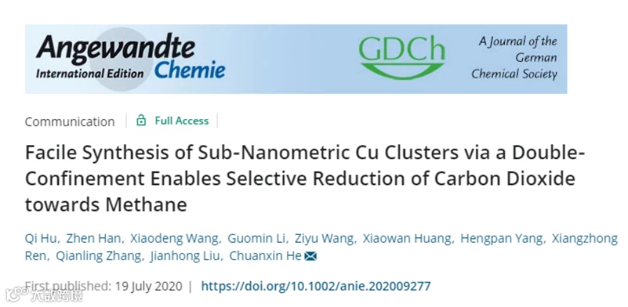 1.何传新课题组Angew:双重限域构建亚纳米铜簇实现选择性二氧化碳还原生成甲烷
