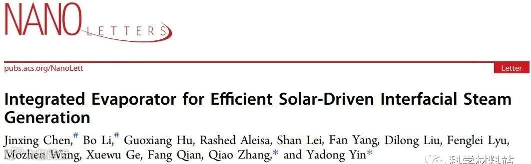 通常,等离子激元纳米颗粒、石墨烯或半导体纳米颗粒等被用作光热转化材料,以提高太阳能到热能的转化效率。尽管光热转换材料本身所占的体积较小,但是现有的高性能光热-蒸汽转化装置不得不包括一个体积巨大的基底材料,一方面作为光热转化材料的载体,另一方面可以实现隔绝热量和输送水的功能。一个典型的方法是在聚苯乙烯表面放置多孔性的碳层,值得注意的是聚苯乙烯材料要足够厚以确保能够将热量维持在界面处,而不会进一步地传导至下方的水体中。