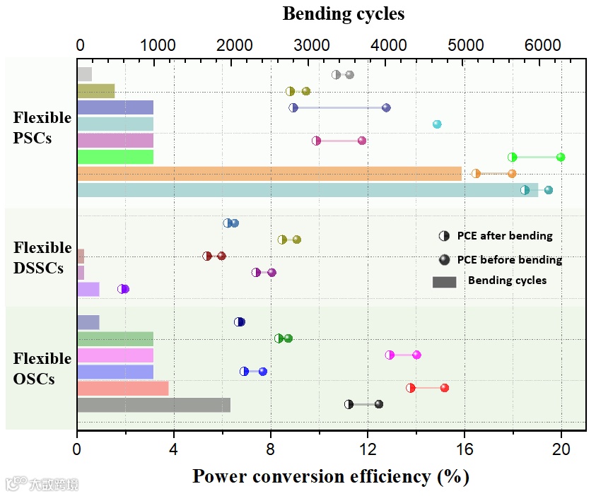 因此,一些诸如氢化无定形硅太阳能电池(a-Si:H)、染料敏化太阳能电池(DSSCs)、有机光伏电池(OSCs)以及钙钛矿太阳能电池(PSCs)等新兴薄膜光伏技术应运而出,并且在柔性基地上也得到了很好的应用。