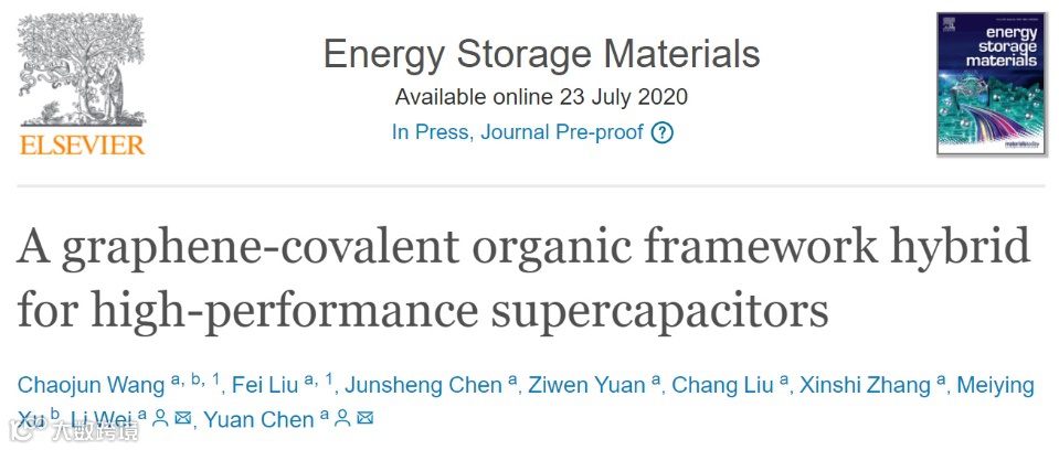 近日,悉尼大学陈元教授课题组在国际期刊Energy Storage Materials (影响因子:16.28) 上发表题为“A graphene-covalent organic framework hybrid for high-performance supercapacitors”的研究工作。