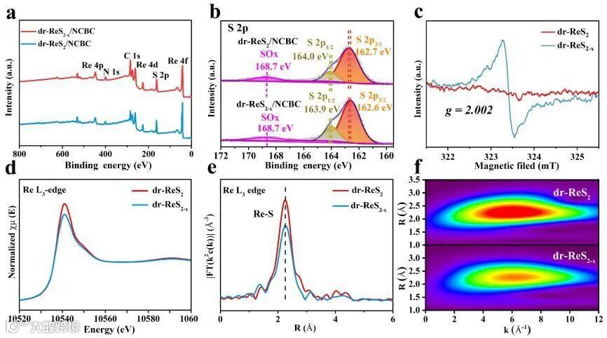 e)dr-ReS2和dr-ReS2-x的XANES傅立叶变换(FT)光谱。