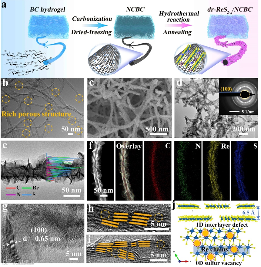 图1. dr-ReS2-x/NCBC的合成过程及形貌表征: