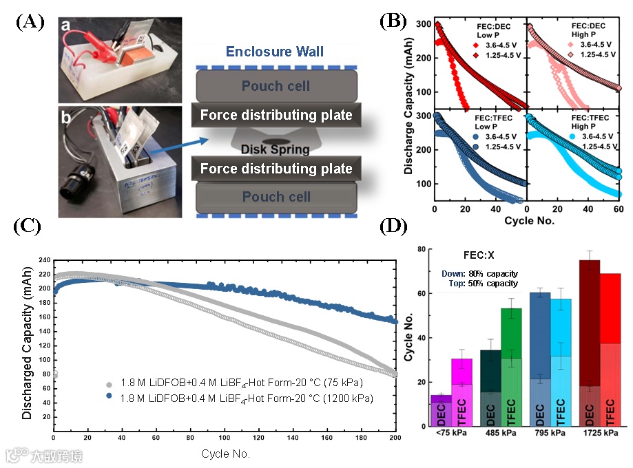 在锂沉积过程中,AFLMBs通常具有可高达20%的体积膨胀,将会导致电池组件内的压力增加,这也需要特别注意,尤其对于实际商业化的电池堆。