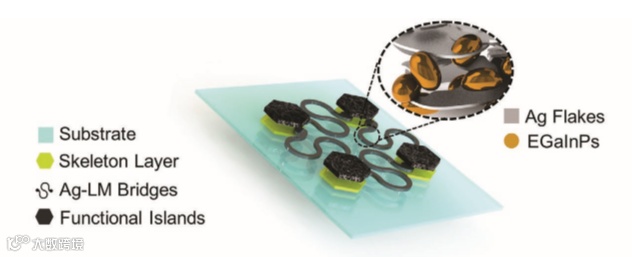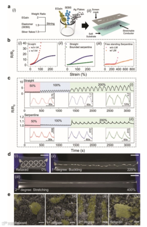 Liquid Metal Based Island-Bridge Architectures for All Printed Stretchable Electrochemical Devices