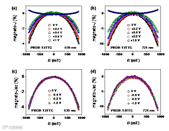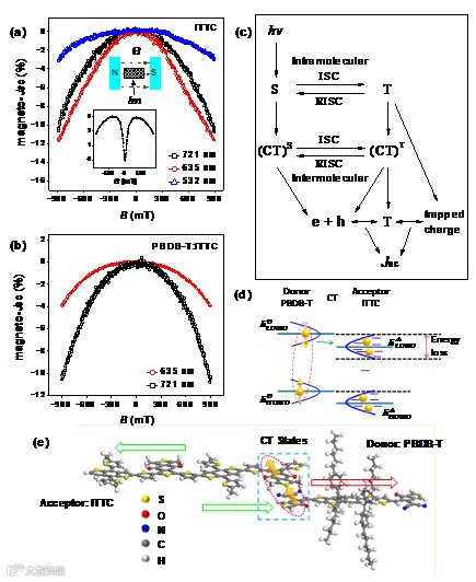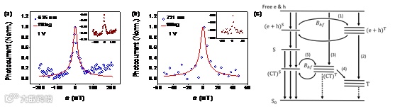 图4. 有机半导体磁光电流测试以及机理分析。