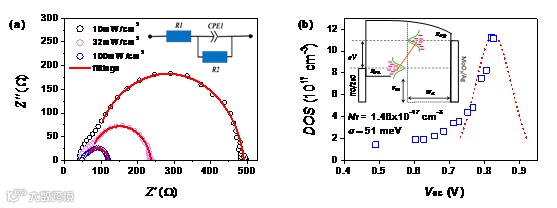 图3. 非富勒烯太阳能电池阻抗谱测试。