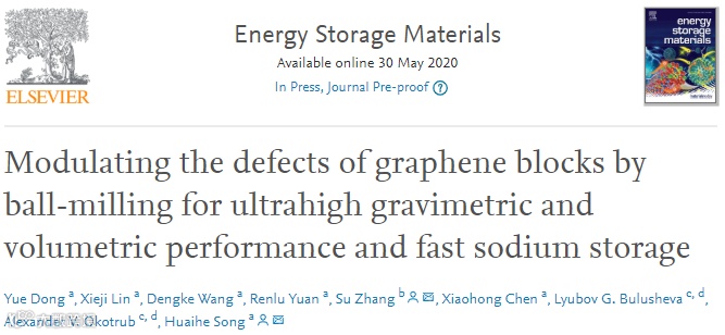 Modulating the Defects of Graphene Blocks by Ball-Milling for Ultrahigh Gravimetric and Volumetric Performance and Fast Sodium Storage, Energy Storage Mater., 2020, DOI: 10.1016/j.ensm.2020.05.016.