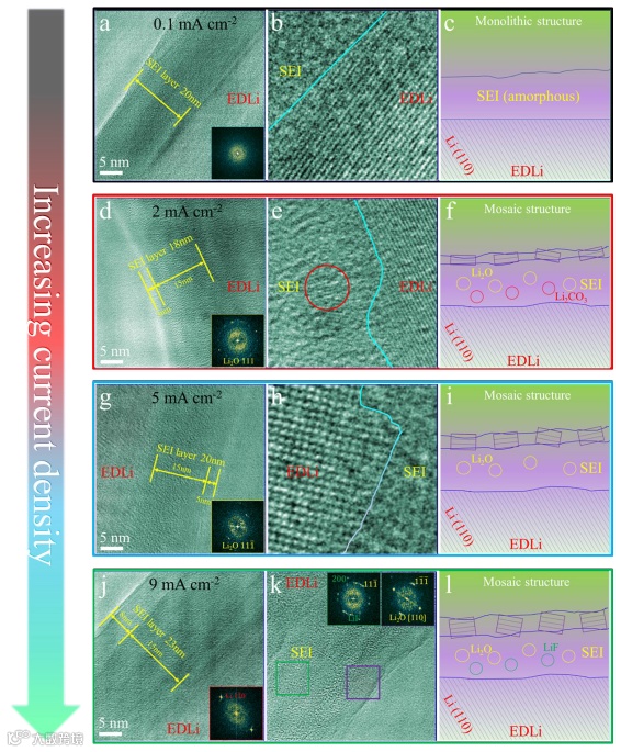 图4. 不同电流密度下SEI的结构