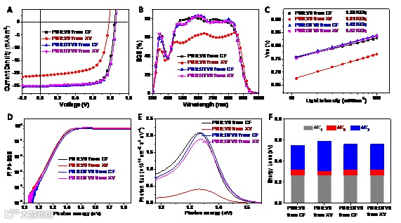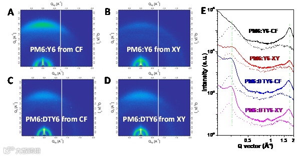 图3. 不同溶剂加工的活性层薄膜中分子的堆积