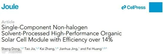 单组分无卤溶剂加工的高效有机太阳电池模组效率超过14%