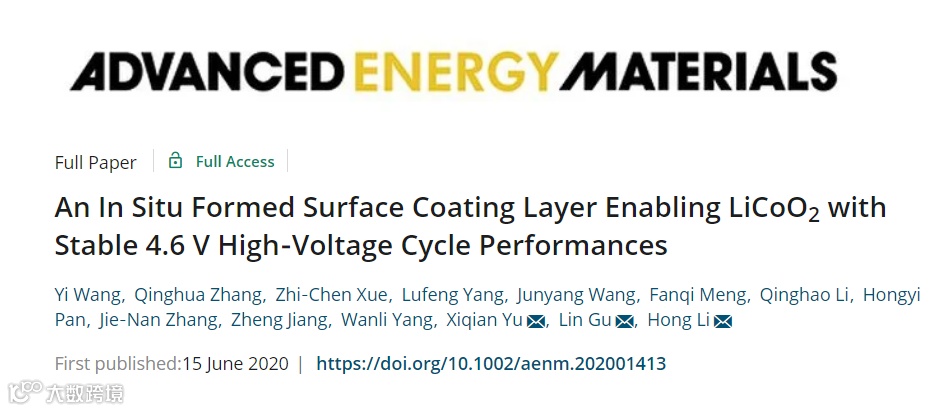文章链接:An In Situ Formed Surface Coating Layer Enabling LiCoO2 with Stable 4.6 V High-Voltage Cycle Performanceshttps://onlinelibrary.wiley.com/doi/10.1002/aenm.202001413 老师简介: 李泓研究员李泓,中国科学院物理研究所清洁能源实验室纳米离子与纳米能源材料研究组研究员。1992年兰州大学化学系物理化学专业毕业,1995年获中国科学院长春应用化学研究所硕士学位,1999年获中国科学院物理研究所博士学位。1999年留所工作至今。2001-2003年在德国斯图加特马普固体研究所Maier教授实验室做博士后研究工作。主要开展锂离子电池电极与电解质材料研究以及固体离子学相关基础科学问题研究。发表SCI论文150篇,总引用次数超过4000次,H因子为36,为本领域文章引用全世界Top1%。获得Gordon,SSI, IMLB, MRS, E-MRS, IUMRS, ICMAT,ABAA等国际会议大会报告、特邀报告、邀请报告共30余次。共申请中国发明专利62项,国际发明专利3项,德国发明专利1项,已授权中国发明专利24项,国际发明专利1项,部分材料已实现技术转移。863负责项目获选参加“国家十五重大科技成就展”。 谷林研究员谷林,中国科学院物理研究所研究员,从事电子显微学方法研究近20年。2002年清华大学本科毕业,启蒙于我国电子显微学专家朱静院士。2005年获得美国亚利桑那州立大学(ArizonaStateUniv.)博士学位,导师DavidJ.Smith教授。2006-2009年在德国斯图加特马普金属所与合作导师ManfredRühle教授工作期间,实现了价电子能量过滤扫描透射电子显微术。2009-2010在日本东北大学原子分子材料科学高等研究机构与合作导师幾原雄一教授工作期间,发展了球差校正环形明场成像技术,实现了原子尺度对锂离子的直接观测。从2010年底起回到中科院物理所先进材料和结构分析实验室。回国后,进一步克服了锂元素和氧元素原子散射截面小所带来的图像衬度弱以及原位实验原子尺度稳定性等问题,实现了外场调控下锂离子、氧空位迁移的原子尺度原位观测;并在此基础上,实现了锂离子迁移的三维原子尺度原位观测。近年来从事功能氧化物材料、储能材料、纳米催化剂的原子尺度结构和电子结构研究,取得了系列成果。发表SCI论文500余篇,其中包括Science及Nature正刊12篇,子刊50余篇,他引28000余次。获得国际电子显微学联合会青年科学家奖(2006);国际锂电池会议青年科学家奖(2012);中国科学院“卢嘉锡”青年人才奖(2013);中国科学院杰出科技成就奖(主要完成人)(2013);基金委“优秀青年基金”和中组部“青年拔尖人才”计划(2015);入选教育部“青年长江学者”计划(2016);获得中国晶体学会青年科技奖(2018);入选科睿唯安材料科学领域(2018-2019)和化学领域(2019)全球高引科学家。 禹习谦 研究员男,2001年至2005年在武汉大学物理科学与技术学院学习,2005年至2010年在中国科学院物理研究所硕博连读。2010年至2013年在美国Brookhaven国家实验室从事博士后研究,2013年至2016年4月为Brookhaven国家实验室助理研究员,2016年4月加入中国科学院物理研究所E01组工作,2018年获基金委优秀青年科学基金项目支持,2019获英国皇家协会Newton Advanced Fellowship资助。近年来一直在研究锂离子电池和钠离子电池等二次电池中关键电极材料离子电子存储机制与电池性能的构效关系,开发高能量密度电极材料。有丰富的利用同步辐射和中子等实验技术研究二次电池材料的经验,发展了多种用于电池研究的原位实验方法。至今已在包括Nature Energy ,Nature Materials ,Nature Communications,Joule,Advanced Energy Materials,Chemical Reviews ,Accounts of Chemical Research在内的国际知名学术期刊上合作发表学术论文120余篇(IF>10论文86篇),引用10000余次,H因子52(googlescholar)。2019年科睿唯安全球高被引科学家。