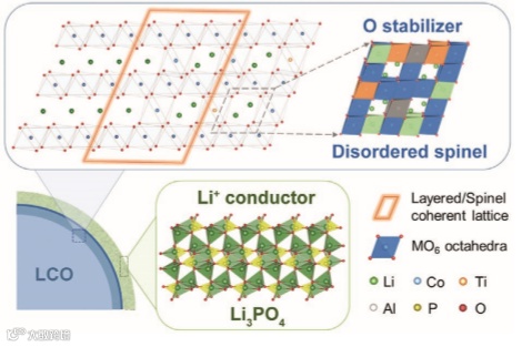 最近的一项研究表明,表面掺杂层可以抑制LiCoO2在4.55V以上电压下的有害不可逆相变,对LiCoO2微量Ti-Mg-Al共掺杂的研究也大大改善了其在4.6v下的循环性能,研究发现,Ti的表面掺杂及其表面偏析稳定了LiCoO2的晶格氧,并有助于提高其高压循环稳定性。而各种研究表明,LiCoO2具有良好的高压循环性能,其改性策略的工作机理不同。