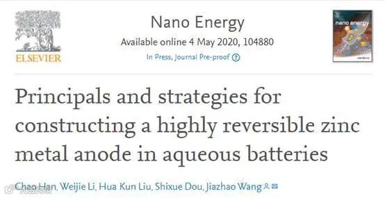 基于以上现状,王佳兆等在国际知名期刊Nano Energy 上发表题为“Principals and strategies for constructing a highly reversible zinc metal anode in aqueous batteries”的综述文章。Chao Han为本文第一作者。