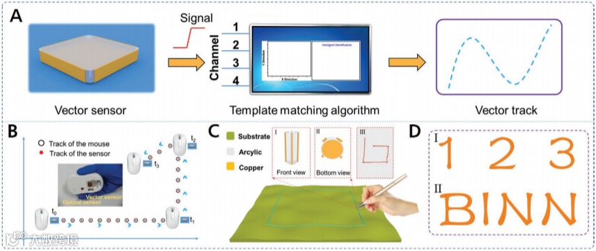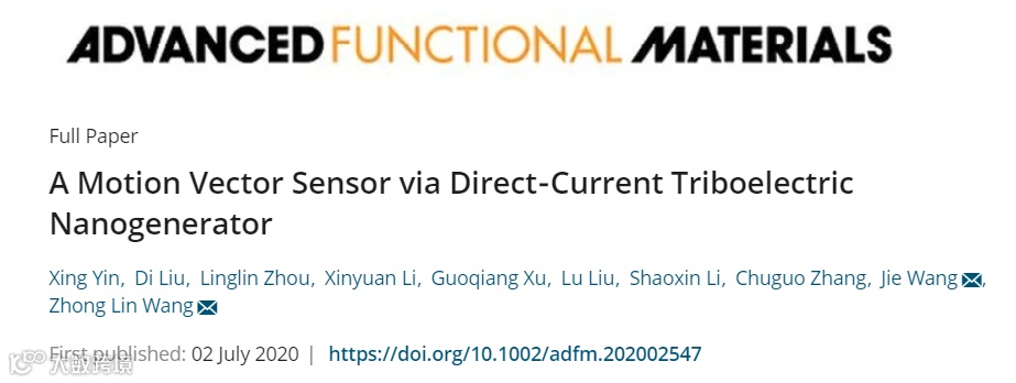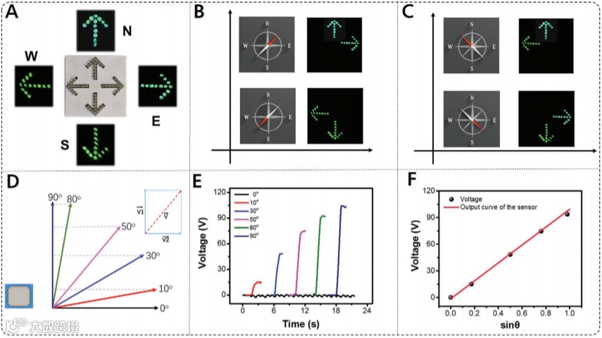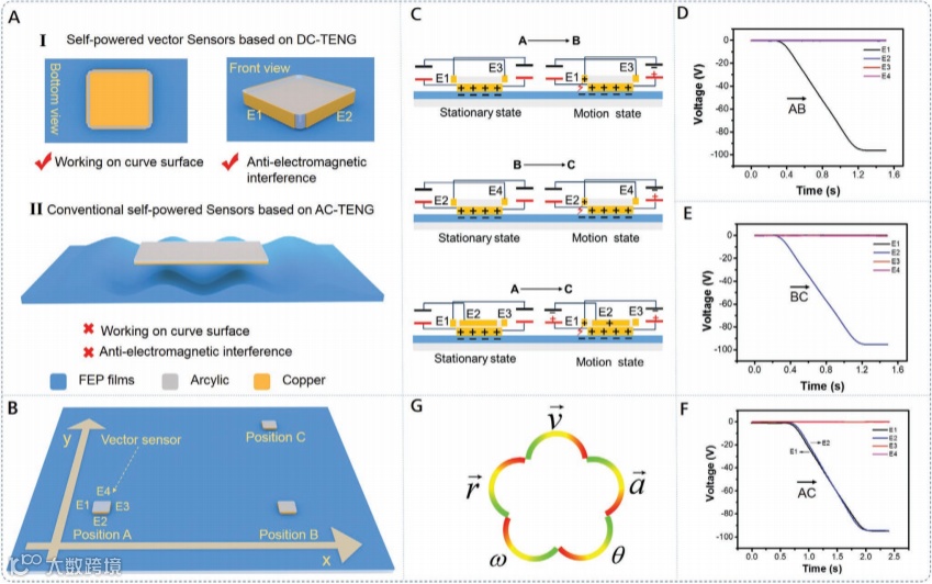 图1. 基于接触起电和静电击穿原理的自驱动运动矢量传感器