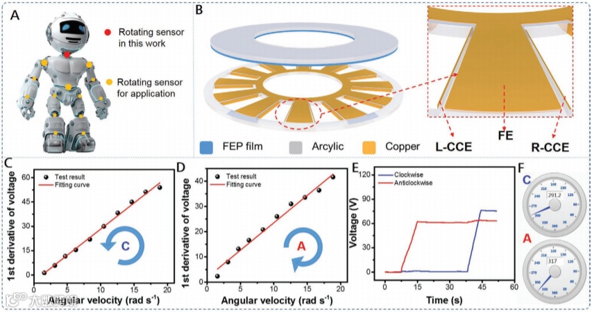 图3显示了转动矢量传感器在监测机器人关节运动方面的应用。R-TVS由转子和定子两部分组成,具体结构如图3B。