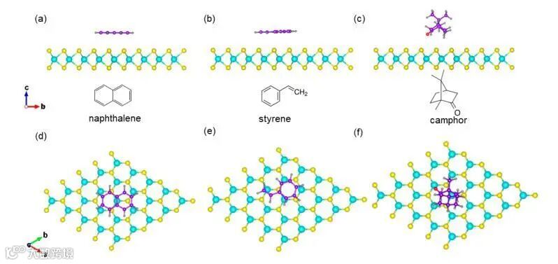 光致发光光谱(PL), 拉曼光谱,原子力显微镜及光学显微图片表明,经过液氮降温、升温和Li离子嵌入前处理过程扩大了TMD样品和衬底之间的距离,使得样品和衬底之间的粘附作用减小,从而使TMD转移的完整性接近100%,大大高于传统的湿法转移。DFT计算表明,两种小分子 (naphthalene萘和 camphor樟脑)与TMD之间的吸附能大于或接近聚苯乙烯高分子(polystyrene, PS)单体,从而使得掺杂小分子不影响高分子薄膜的吸附作用。小分子的溶解度均显著大于高分子PS。小分子的嵌入使得高分子骨架(scaffold)的分子交联间距增大。同时,经过加热后,转移媒介薄膜表面的小分子很容易升华,留下孔洞,利于溶剂进入溶解高分子骨架。这几种因素共同作用,使得有机残留物大大减少,同时溶解处理时间大大缩短(减少了5倍左右)。