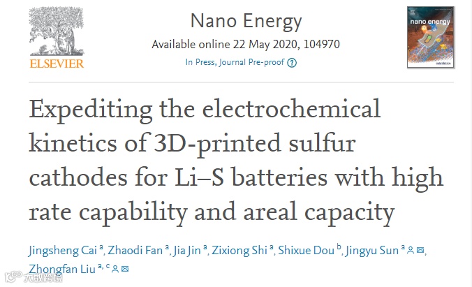 导师解析:3D打印技术有助于构建具有多级孔结构的自支撑电极,在设计高负载厚电极时,更有助于锂离子和电子传输。将这一优势运用到锂硫电池中,通过逐层打印,可以方便、高效、快捷地构筑高负载硫正极。同时将具有良好催化活性的电催化剂加入打印墨水中,更有助于提升正极的反应动力学,对多硫化物的管控起到积极作用,更加有效地抑制“穿梭效应”,获得具有优异性能的锂硫电池。这为设计锂硫电池的正极结构和提升硫正极的反应动力学提供了新的思路与策略。