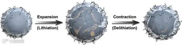 可拉伸界面可以将粉碎的SiOx颗粒动态凝聚在一起,而不会崩解。 -