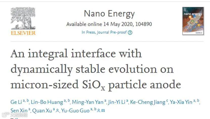在SiOx微粒上设计并构建了具有动态稳定演化的整体界面。 -