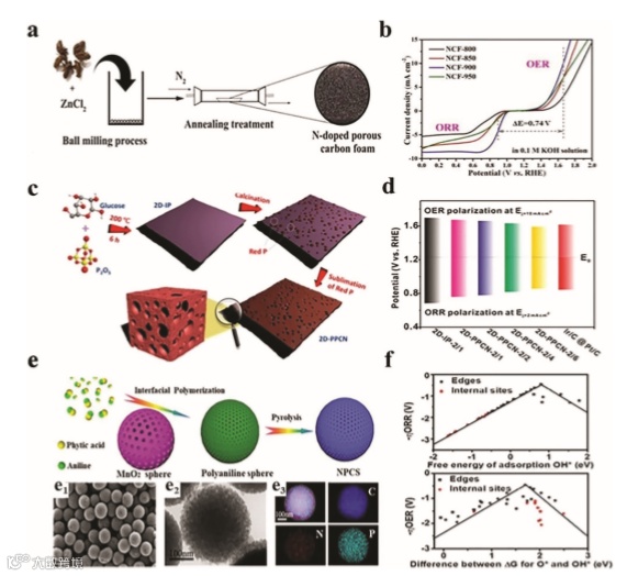 此外,成本高,铂/钌/铱的储量有限,选择性低等不足对燃料电池、金属-空气电池和水电解槽的大规模商业化提出了挑战。因此,人们迫切需要为ORR和OER开发具有成本效益、地球资源丰富的双功能电催化剂。在这方面,对ORR和OER高效、耐用的双功能电催化剂提出了更高的要求。