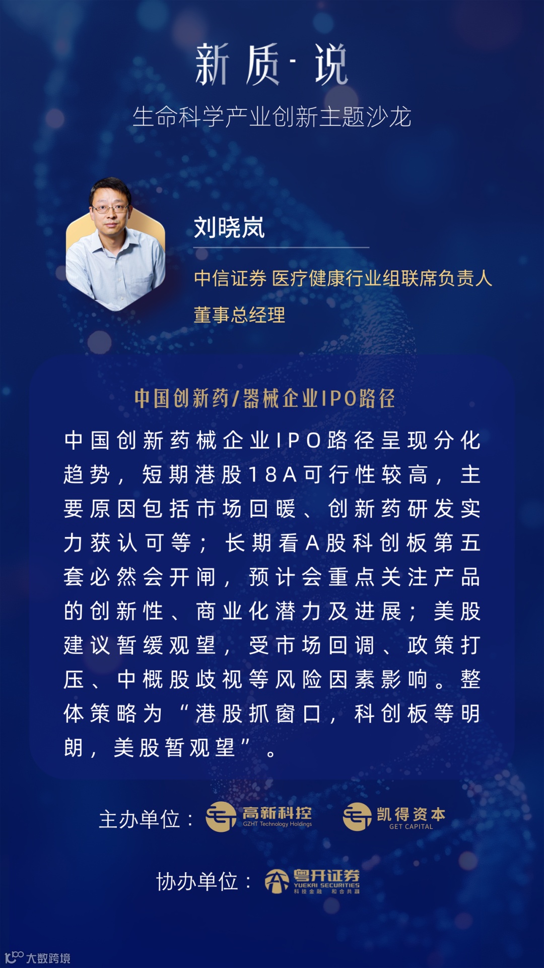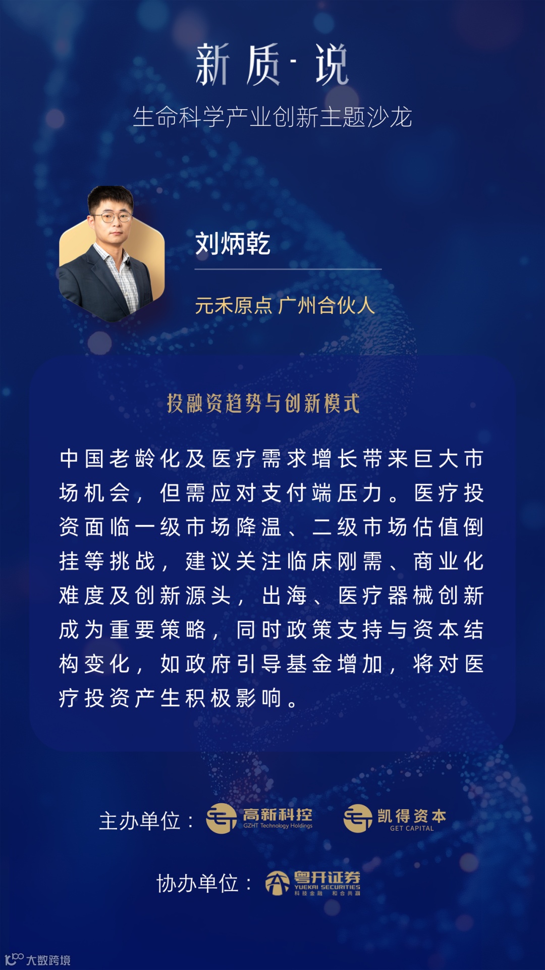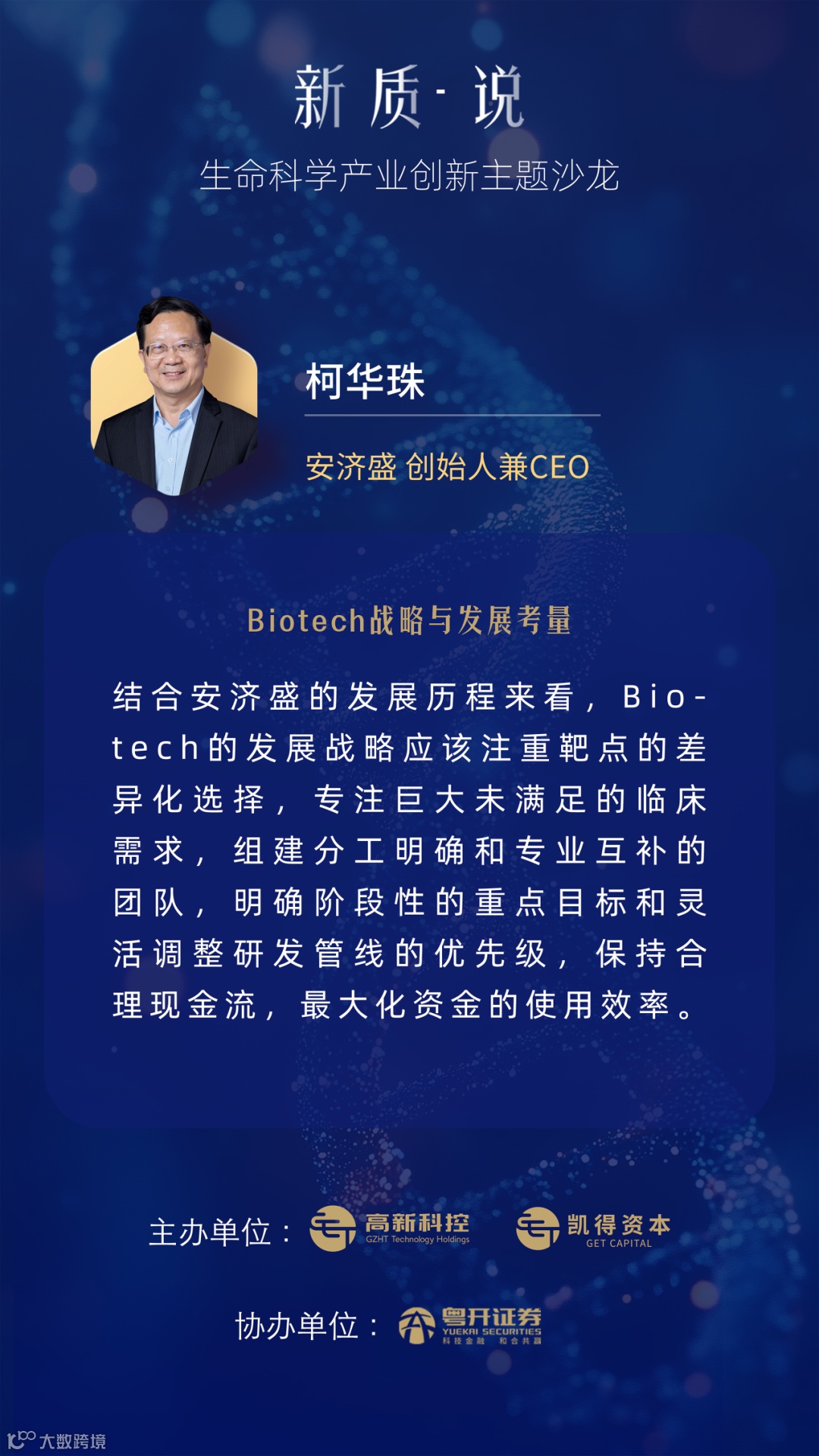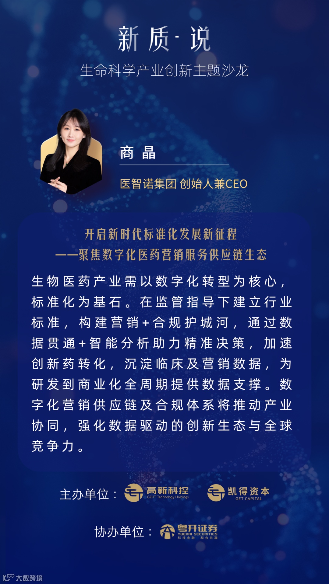 作为国家战略性新兴产业,生命科学产业已成为培育新质生产力的核心赛道。广州开发区、黄埔区依托超4800家生物医药企业、超2000亿元级产业规模,正加速构建世界级生物医药集聚区。在此背景下,“新质说”系列主题沙龙因应而生,活动旨在搭建产业与资本深度对话的平台,助力企业把握全球化机遇,推动产业链与创新链深度融合。