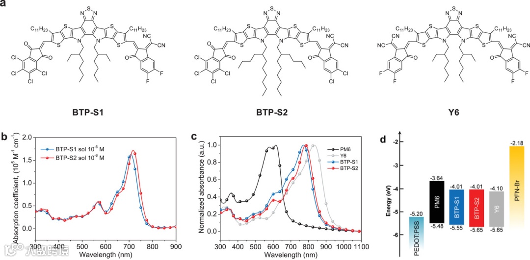 a) Chemical structures of BTP‐S1, BTP‐S2, and Y6.