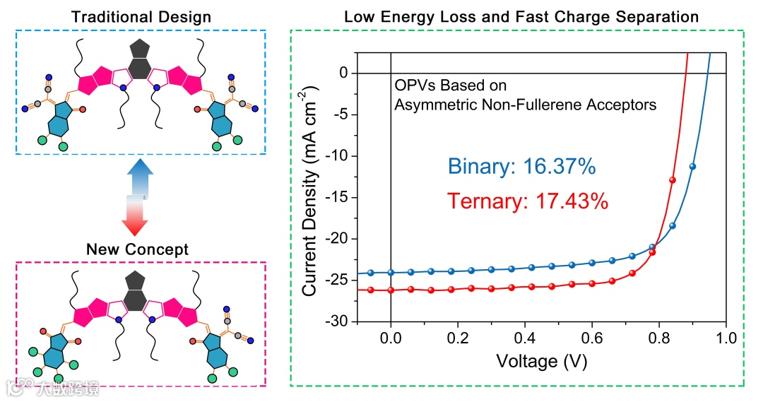 不对称受体, 电荷分离, 分子设计, 非富勒烯受体, 有机光伏