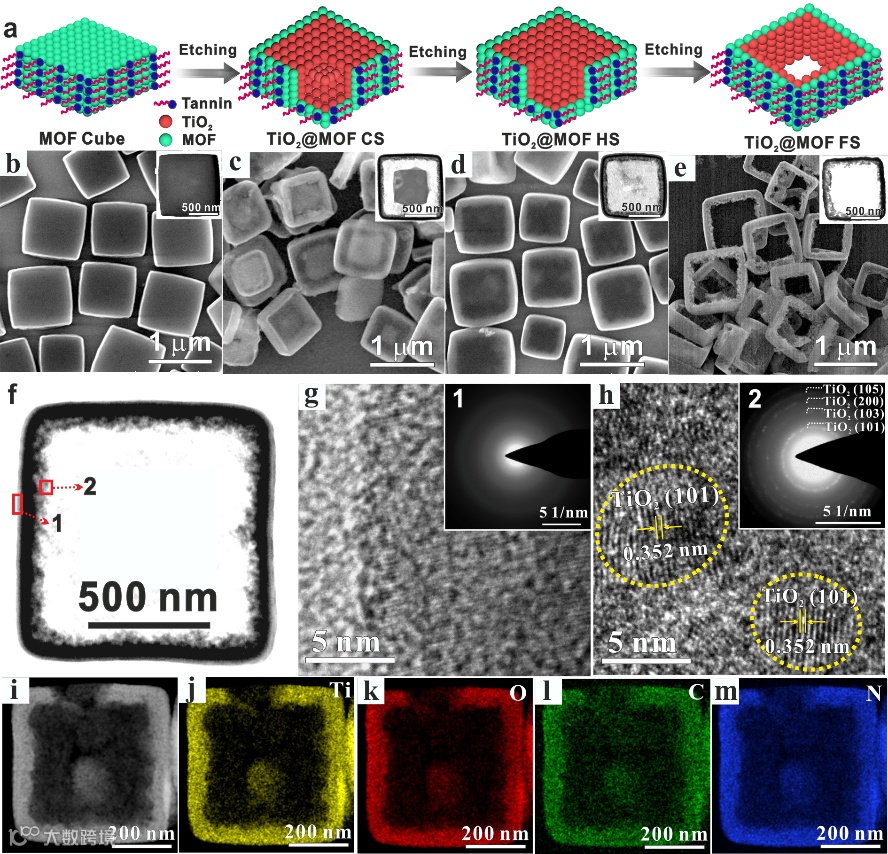 通过刻蚀的方法合成了TiO2@NH2-MIL-125(Ti)框架结构。