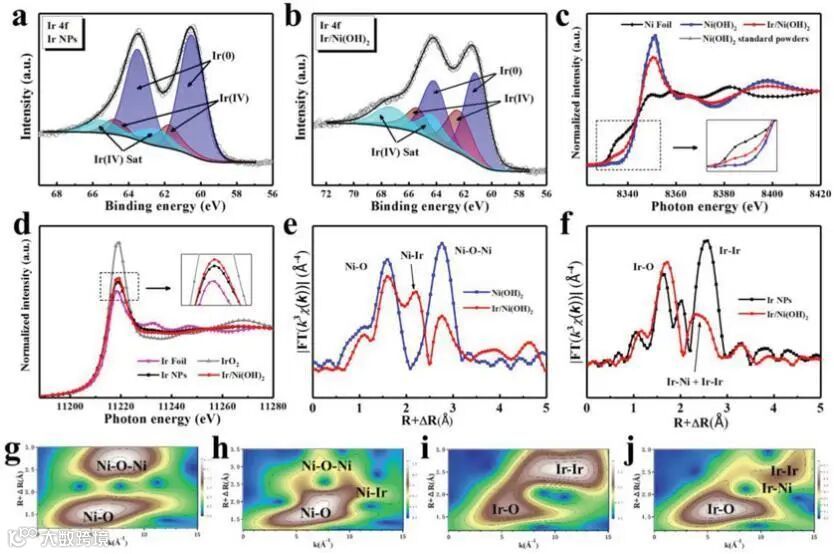 f) Ir LIII‐edge EXAFS spectra of Ir NPs and Ir/Ni(OH)2.