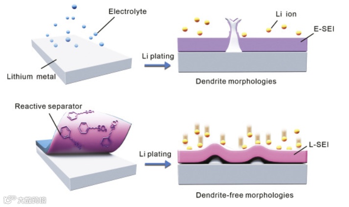 锂金属电池,反应分离器,固体电解质相间,无机物,枝晶