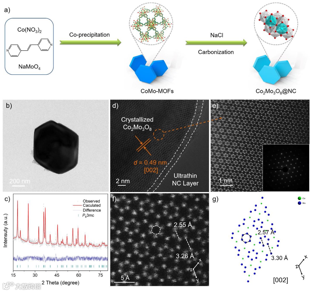 a) Schematic illustration of the synthesis process of Co2Mo3O8@NC;