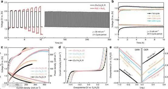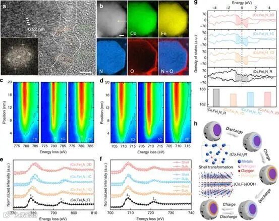 为了生动地描述预测的发展,研究者们提出了动态电催化剂的概念,并将其用于可充电锌-空气电池。在传统三维空间的基础上增加时间坐标作为第四轴,建立了电池运行后的动态图像。为了证明动态催化剂这一概念,双金属氮化物(Co,Fe)3N被选为金属基材料的典型代表。