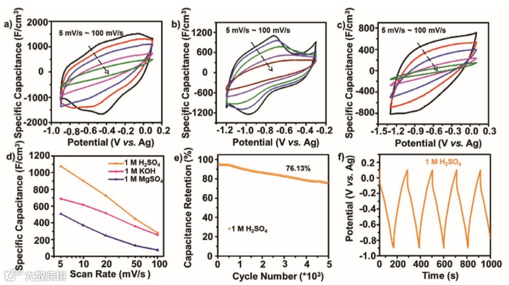 便携式可穿戴电子设备的发展使得人们对清洁能源提出了更高要求。满足要求充电的方式有很多,如二次电池(锂、钠、钾等)、燃料电池、各种离子电容器等。但与其他报道的储能装置相比,超级电容器可以进行快速充放电来完成能量供应,超级电容器主要依靠两种不同的储能方式:电极/电解液表面的静电吸附和快速表面氧化还原反应产生的赝电容。目前,寻找适合超级电容器的高体积性能柔性材料已成为一个重要的研究目标。