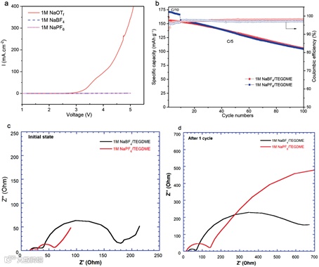 这些结果表明,含有1M NaBF4或1 M NaPF6的TEGDME电解液在金属钠和钠离子电池中具有很好的应用前景。