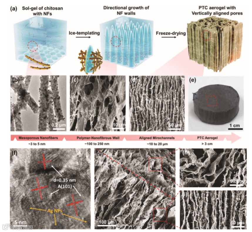 g–i) SEM images of anisotropic microchannels in PTC gel