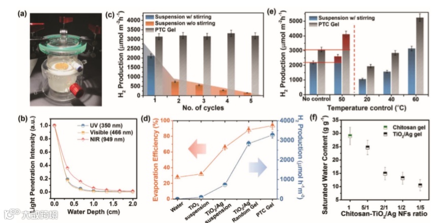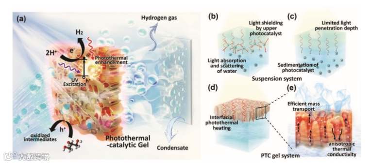图1. 太阳能蒸发和制氢的PTC凝胶设计示意图。
