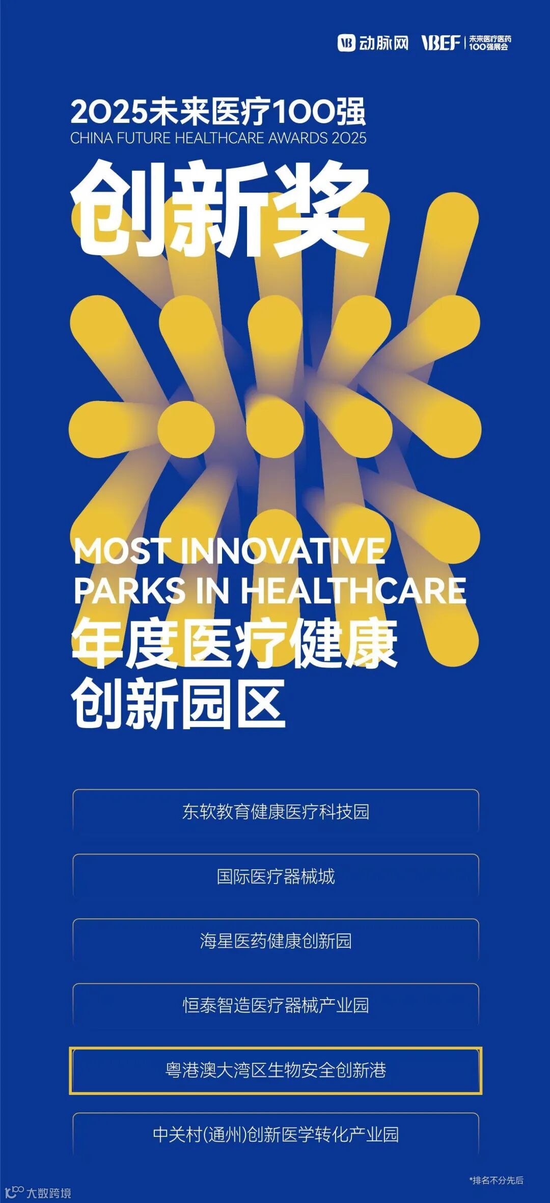 近日,2025未来医疗医药100强展(VBEF)在苏州隆重举办。广州开发区控股集团有限公司(简称“广开控股”)旗下高端生物产业集聚载体——粤港澳大湾区生物安全创新港(简称“BioGBA”)凭借前瞻战略规划与创新价值潜力,从超40家参选园区中脱颖而出,斩获“年度医疗健康创新园区”殊荣。这是继2024年摘得“年度生物医药标杆产业园区”奖项后,BioGBA凭借综合影响力、产业生态构建、持续创新能力,在行业权威评选中获得的又一重要成果。