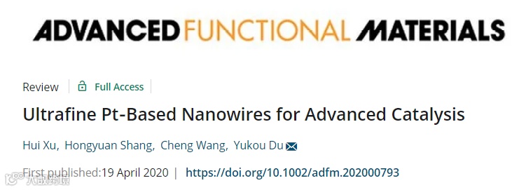 近日,苏州大学的杜玉扣等人在国际知名期刊Advanced Functional Materials (2018 影响因子:15.62)上发表题为“Ultrafine Pt-Based Nanowires for Advanced Catalysis”的综述。本文第一作者是Hui Xu。