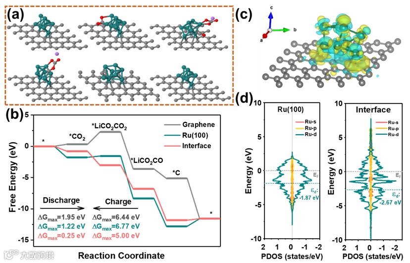 本文中,西安交通大学化学学院丁书江教授和苏亚琼研究员团队采用密度泛函理论(DFT)揭示了钌/碳复合催化剂对CRR和CER过程催化的构效关系。结果表明,相比于钌和碳位点,钌/碳界面(Ru/C)表现出更有利的电子结构,可以显著降低CRR和CER过程关键中间体的反应势垒。