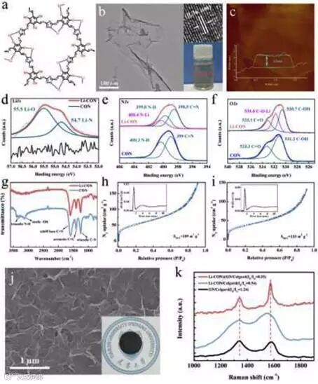 作者选择1,3,5-三甲酰间苯三酚和3,5-二氨基-1,2,4-三唑来制备COF纳米片(标记为CON),并随后通过锂化方法对其进行处理,从而得到锂化共价有机骨架纳米片(Li-CON),其中含有丰富的酚类和三唑类单元,并在CON有序通道中成功引入了岩化位点。