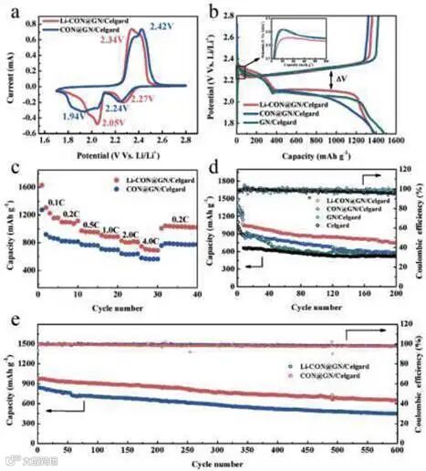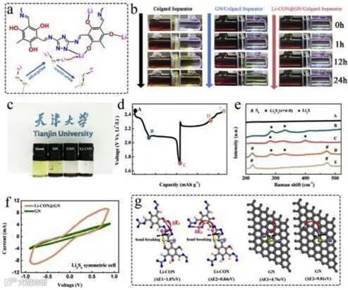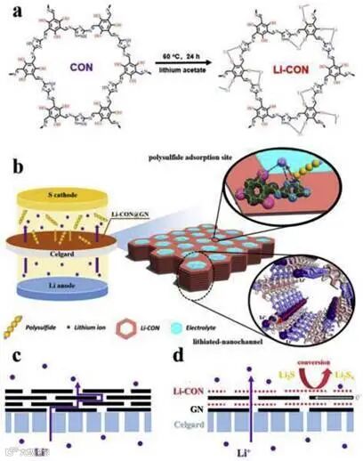 三唑单元中的吡啶N作为吸附点,通过在Li-CON表面的偶极-偶极相互作用捕获多硫化物;