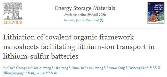 近日,天津大学姜忠义教授,原续波教授等人在在国际知名期刊Energy Storage Materials上发表题为“Lithiation of covalent organic framework nanosheets facilitating lithium-ion transport in lithium-sulfur batteries”的文章。Yu Cao,Cheng Liu等人为本文共同第一作者。