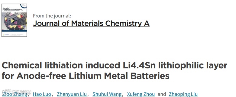 中科院宁波材料所刘兆平研究员/周旭峰研究员JMCA:化学锂化法构筑Li4.4Sn亲锂层助力无锂负极锂金属电池 科学材料站