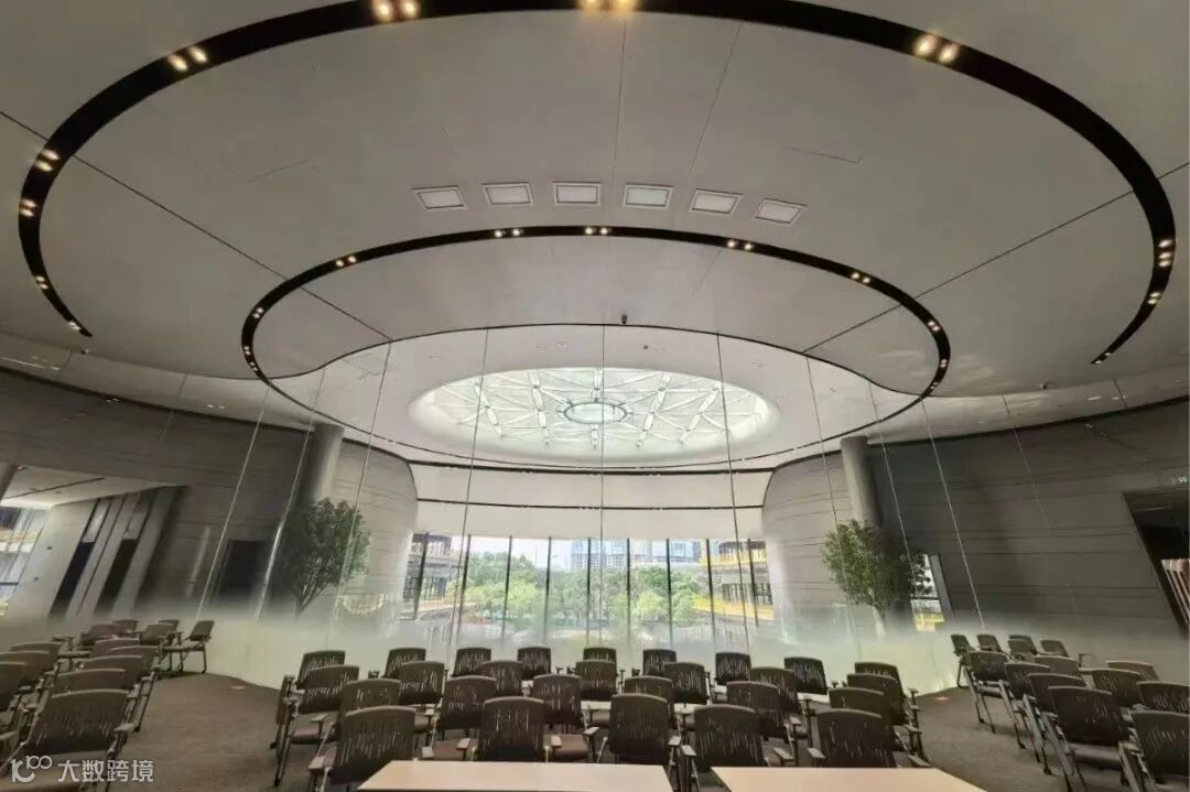 全新开放的广开云领科技城招商展示中心,则以“新质生产力太空舱”为理念,将招商展示与未来科技体验深度融合,通过数字人导览、量子视界交互系统、区域动态数据沙盘、穹顶星云投影产业展示等科技体验矩阵,通过前沿的全息会议系统的智能化共享路演厅,助力实现“商务洽谈-科技体验-休憩社交”场景的无缝切换,形成集招商展示、数字交互、产业社交于一体的复合型运营空间。