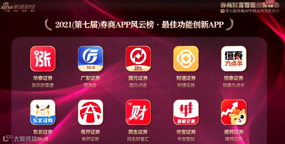 1月24日,新浪财经第七届券商APP风云榜荣耀榜揭晓,粤开证券成功斩获“2021(第七届)券商APP风云榜·最佳功能创新APP”大奖。本次评选,为新浪财经连续第七年主办的券商APP评选活动,参选券商数量达近百家,通过用户参与反馈与券商互动交流,全方位展示各大券商APP特色发展、创新功能,经过网络票选、评测报告等多轮筛选,旨在为投资者寻找最佳投资工具。