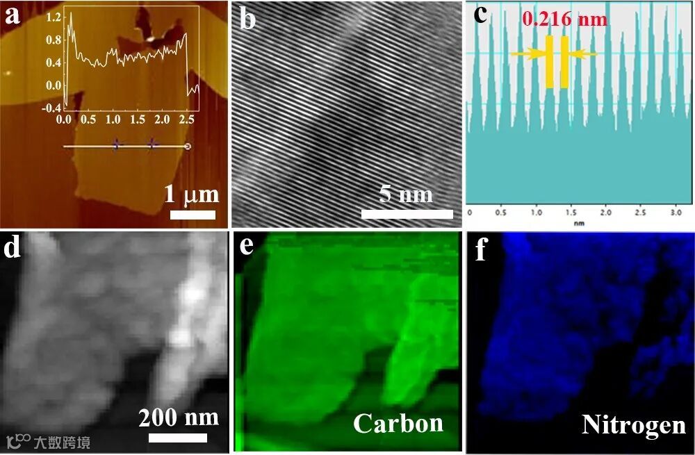 图 2. 具有短程有序结构二维结晶氮化碳的形貌图。