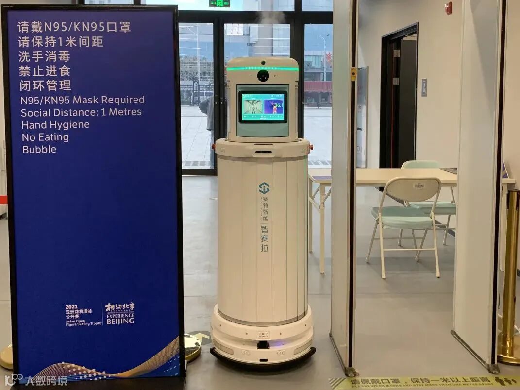 在首都体育馆入口处,赛特智能的智赛拉·智能感控机器人对所有入馆的人员测量体温。该机器人既可以自动测温,又可以进行紫外线消毒和环境喷剂消毒,在运作全程还可以自由走动,并避开人和其他障碍物,为冬奥场馆的多重防疫带来智慧化的科技力量,从而节省更多的人力与物力资源。