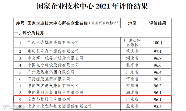 2月15号,国家发展改革委办公厅发布《关于印发国家企业技术中心2021年评价结果的通知》,黄埔区内上市企业金发科技获得96.1的高分,在全国参与评价的1744家企业中排名第九。